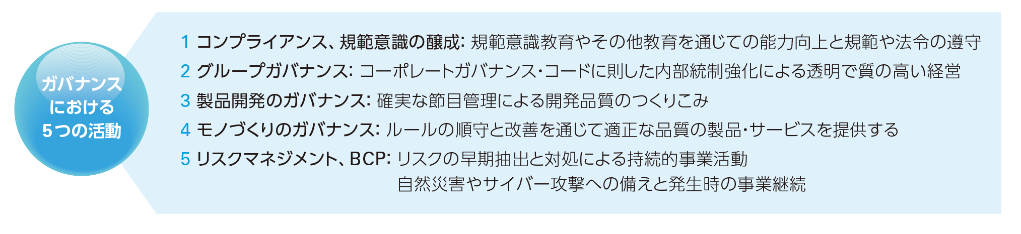 基本的な考え方に基づき、「ガバナンスにおける5つの活動」を定義し、推進(jìn)します。